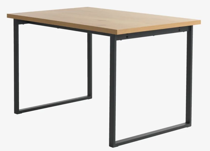Eettafel met een tafelblad in deco fineer met een eiken look en zwarte poten in staal. B80 x L120 x H75 cm