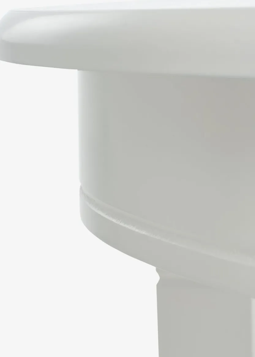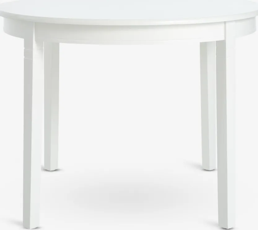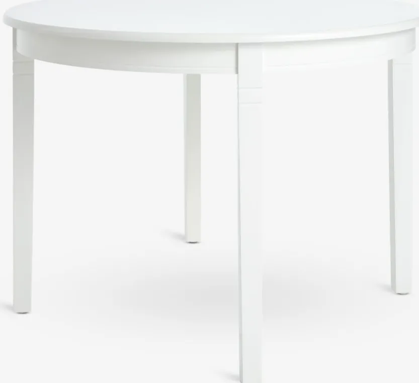 Ronde eettafel met een wit tafelblad en bijpassende poten van MDF. De tafel is gelakt voor een langere levensduur. Ø110 x H75 cm