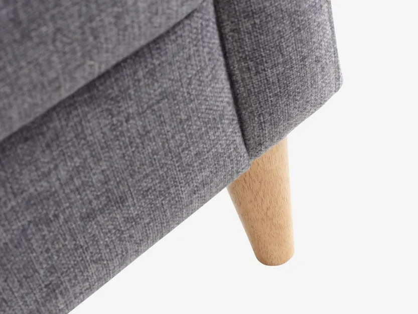 Stof. Zit- en rugkussens van schuim. Poten van massief hout. B69 x H90 x D76 cm