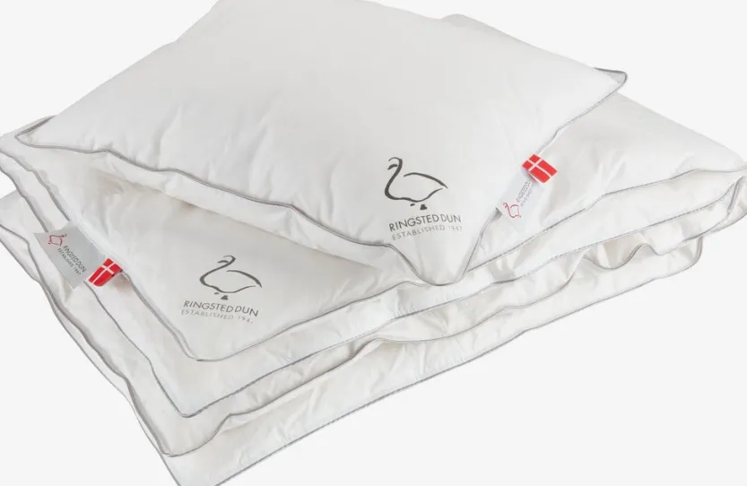 Allergievriendelijk junior hoofdkussen 40×45 cm met 90% witte Europese ganzendons/10% ganzenveren, 100 g. Zachte tijk van 100% cambric katoen. De dichtgeweven tijk helpt het binnendringen van huisstofmijt te verminderen. Vulkracht 700. Wasbaar op 60°C.