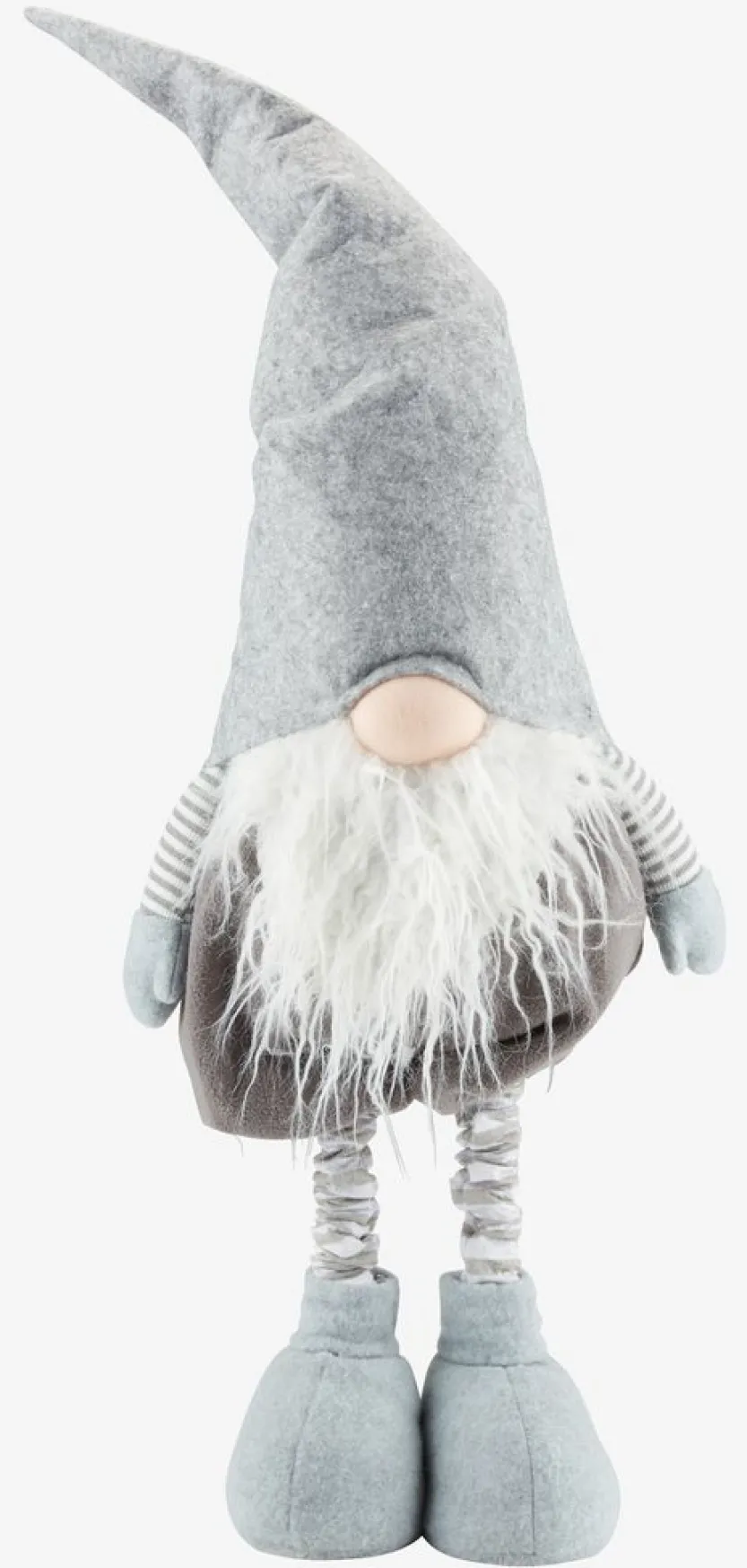 Grijze kerstelf met een puntige hoed en een lange witte baard. Deze decoratieve elf heeft gestreepte armen en benen en is perfect voor het toevoegen van een feestelijke sfeer in huis. De elf staat stevig op zijn grote schoenen en heeft een charmant, speels ontwerp. B18 x L19 x H115 cm