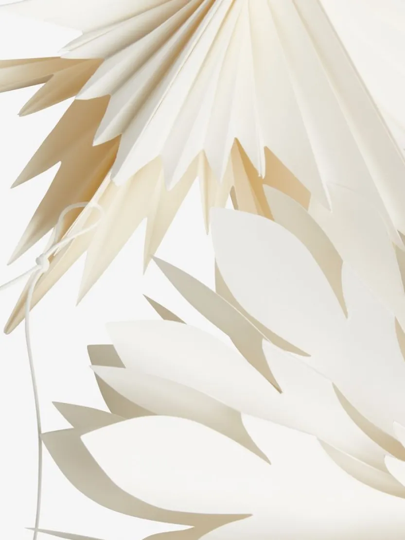Witte kerstster met papieren vouwen die een prachtig visueel effect geven. Beschikbaar in verschillende designs voor extra variatie. Ø30 x H8 cm