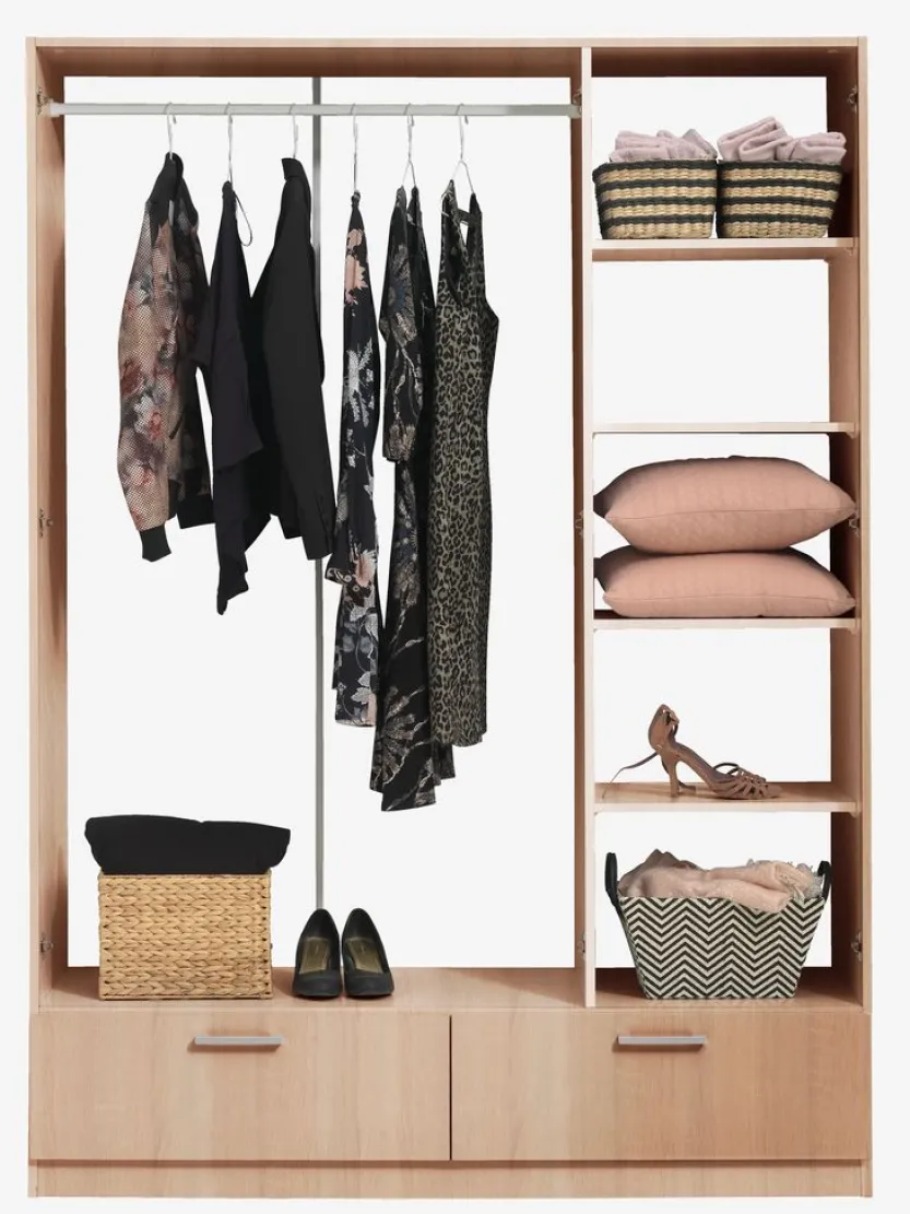 Deco fineer. Kastindeling: 4 schappen en 1 kledingroede. B144 x H200 x D50 cm