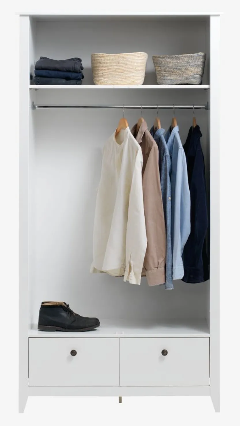 Kledingkast NORDBY 105×200 2 deuren 2 lades wit