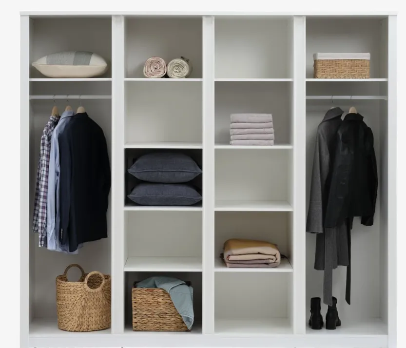 Deco fineer. Kastindeling: 10 schappen en 2 kledingroedes. B220 x H197 x D61 cm