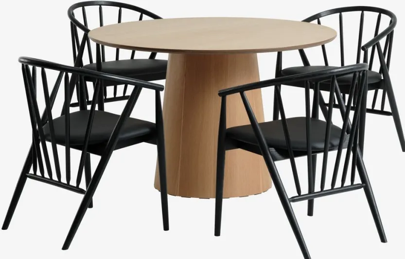 KLIPLEV Ø120 tafel eiken + 4 ARNBORG stoelen zwart