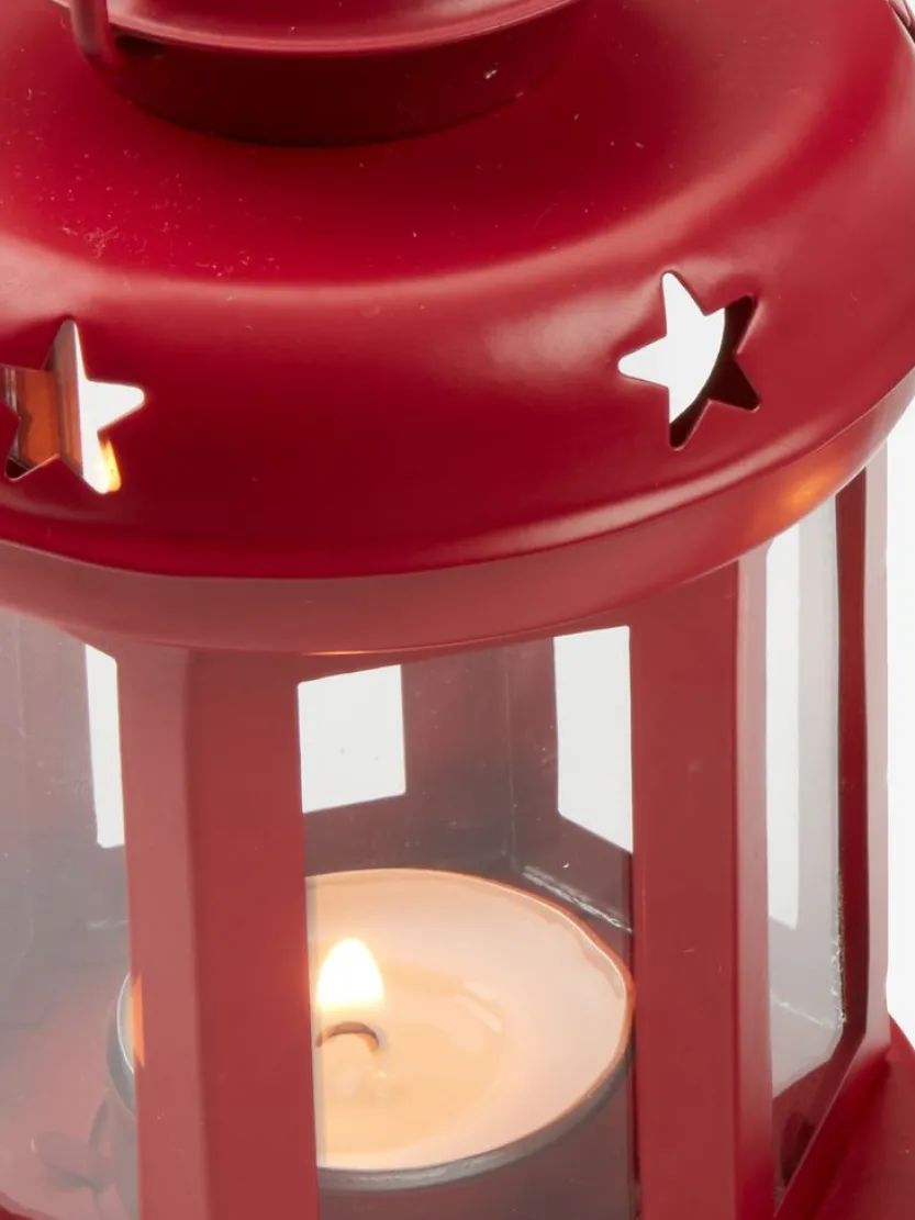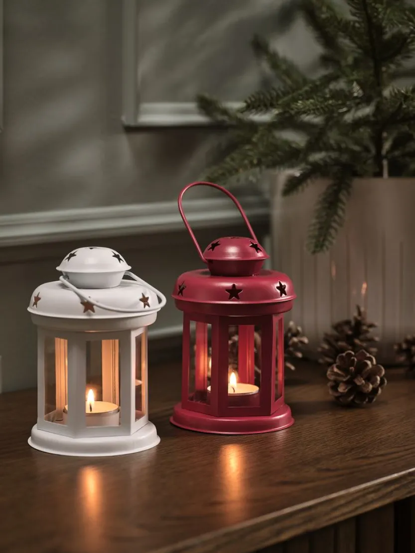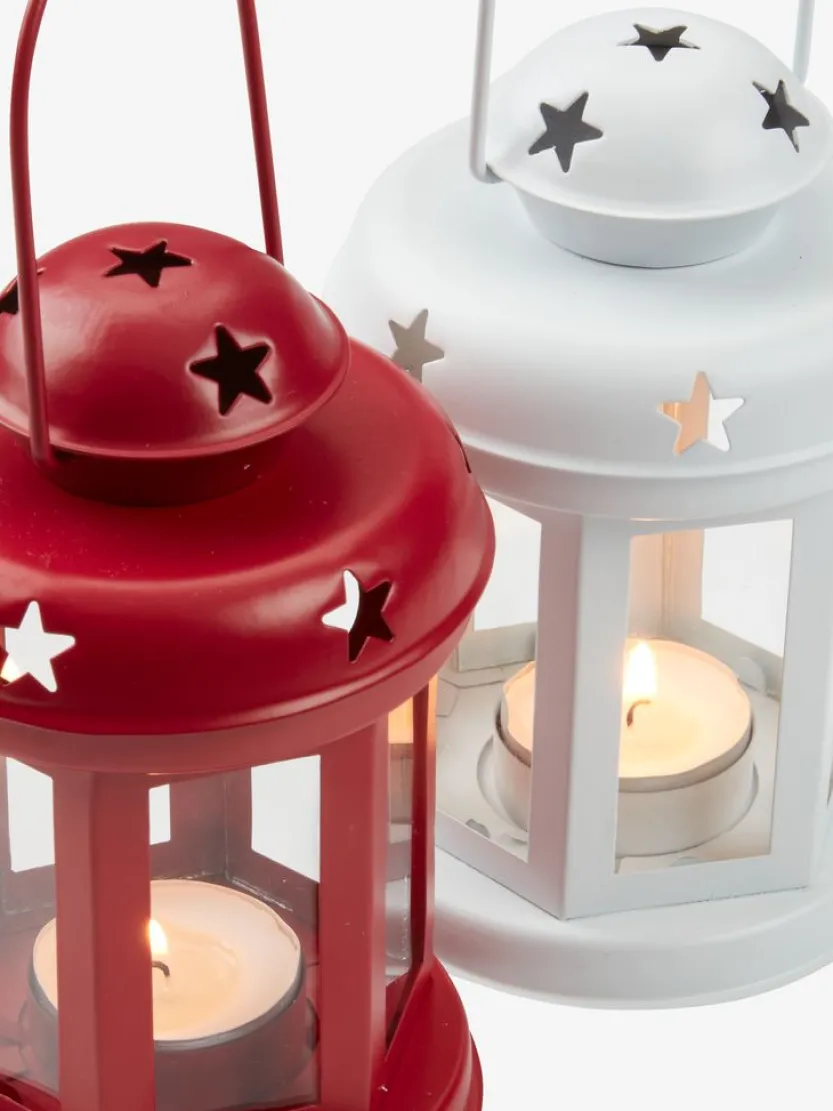 Set van twee lantaarns in glas en metaal met een kerstthema. Deze lantaarns zijn beschikbaar in rood en wit en hebben uitsparingen in de vorm van sterren, waardoor een sfeervol licht ontstaat wanneer ze verlicht worden. Perfect voor het creëren van een warme en feestelijke sfeer in huis. Ø10 x H15 cm