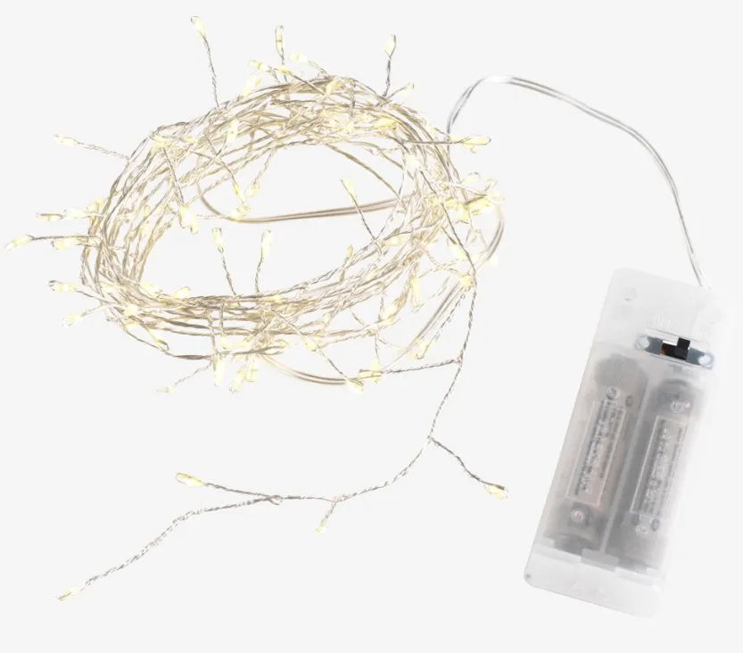 Indoor lichtsnoer. 100 LED. Warm wit licht. Excl. batterijen. 2.5 m verlichting + 0.4 m snoer