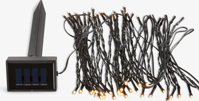 Outdoor lichtsnoer. 60 LED. Warm wit licht. Incl. batterijen. 9 m lampjes + 3 m snoer