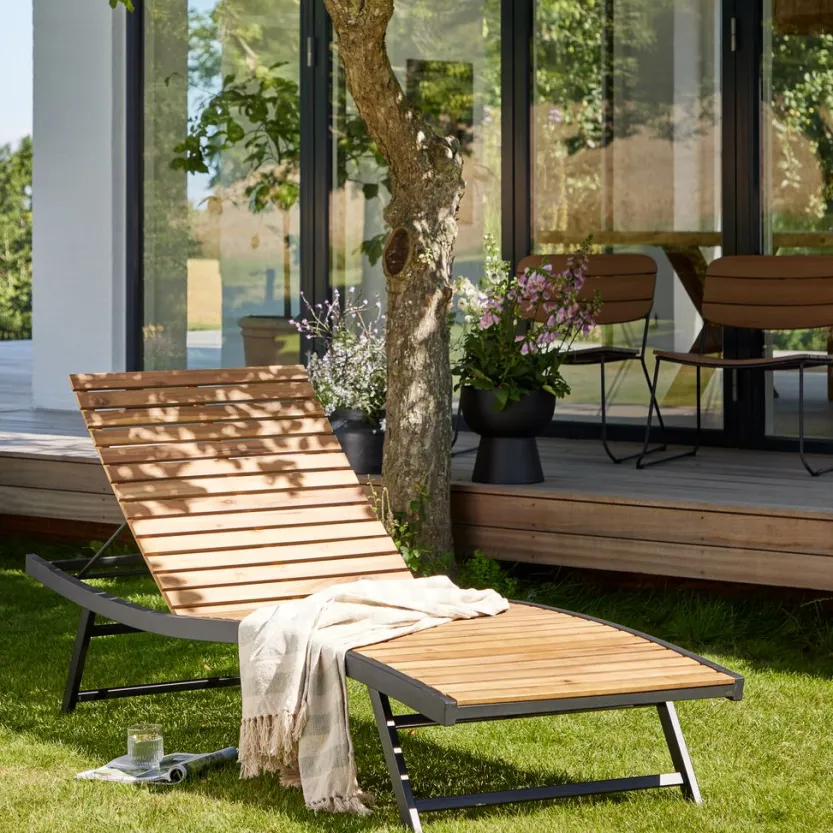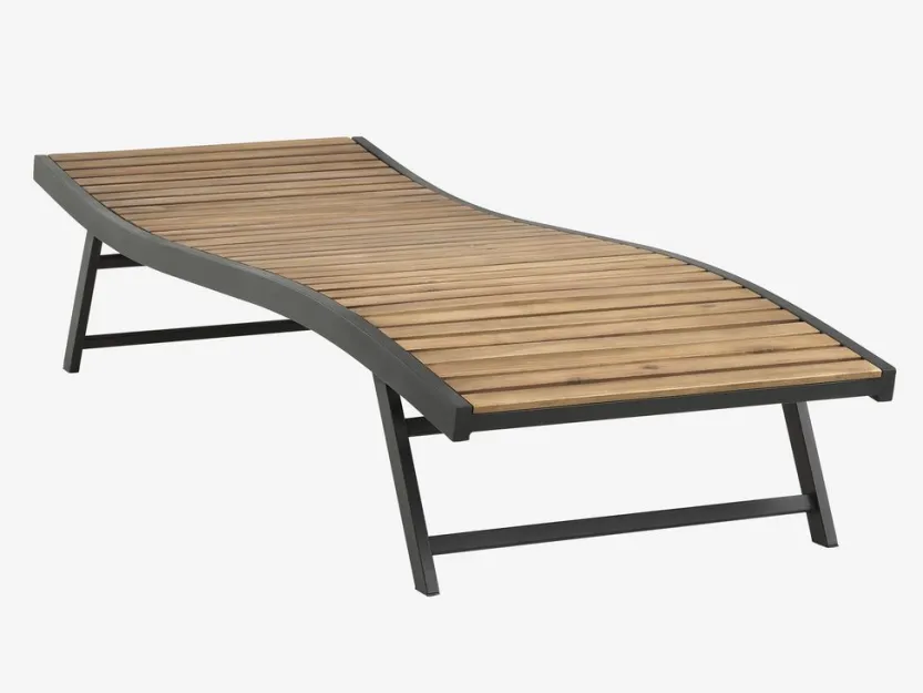 Ligbed van gegalvaniseerd staal en geolied FSC®-hardhout. B70 x L200 x H91 cm