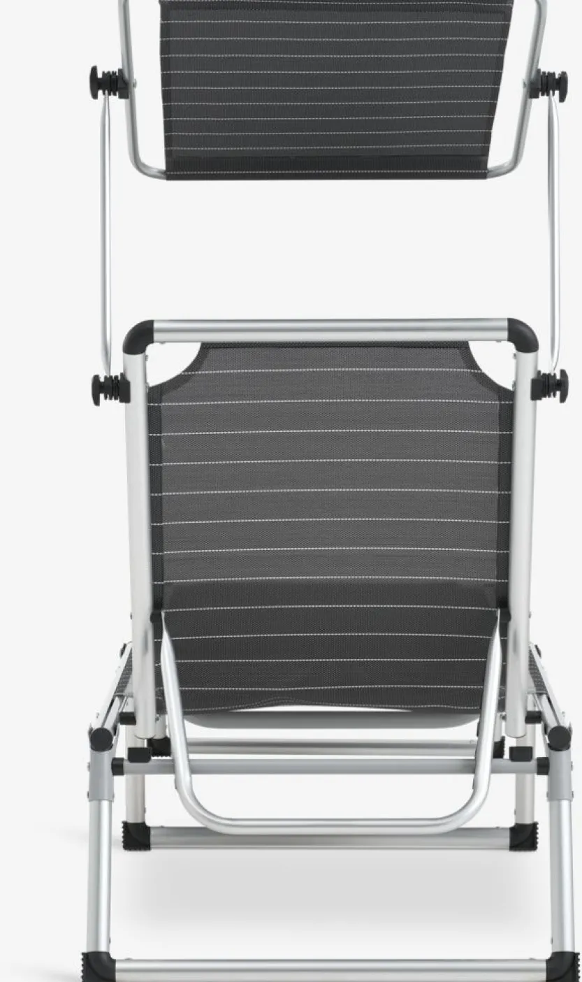 Aluminium en textileen. Met verstelbaar zonnescherm. Inklapbaar. B59 x L194 x H79 cm