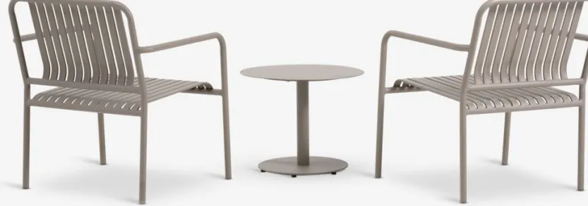 2-zits loungeset. Tafel: Staal. Ø50 x H40 cm. Stoel: Aluminium.