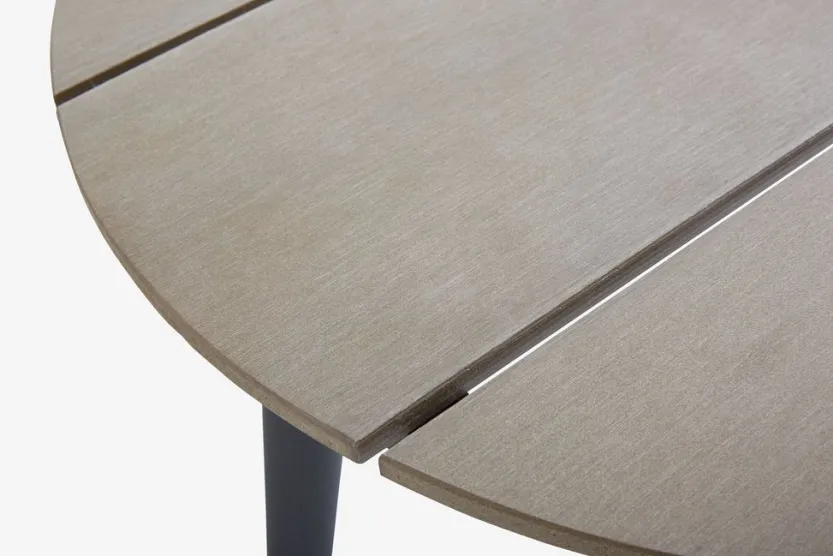 5-zits loungeset. Tafel: Aluminium en kunsthout. Ø72/53 x H42/36 cm. 3-zits bank en stoel: Aluminium en polyrotan. Incl. luxe kussens met duurzame, structuurgeweven hoes.