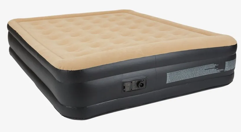 Luchtbed van PVC met een zacht velours oppervlak. Met ingebouwd kussen en elektrische pomp. Incl. opbergtas. B156 x L201 x H46 cm