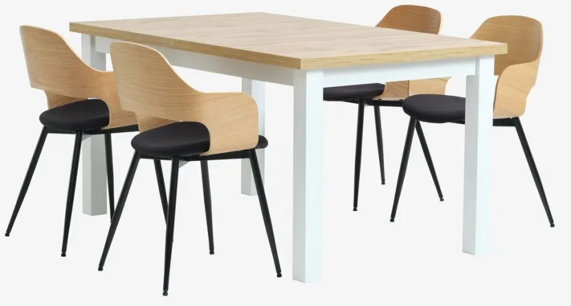 MARKSKEL L150/193 tafel + 4 HVIDOVRE stoelen eiken/zwart