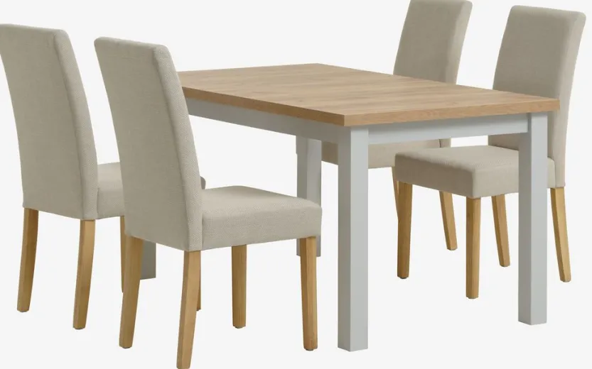 MARKSKEL L150/193 tafel lichtgrijs + 4 TUREBY stoelen beige