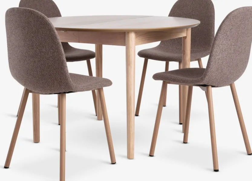 MARSTRAND Ø110 tafel eiken + 4 EJSTRUP donkerzand/eiken