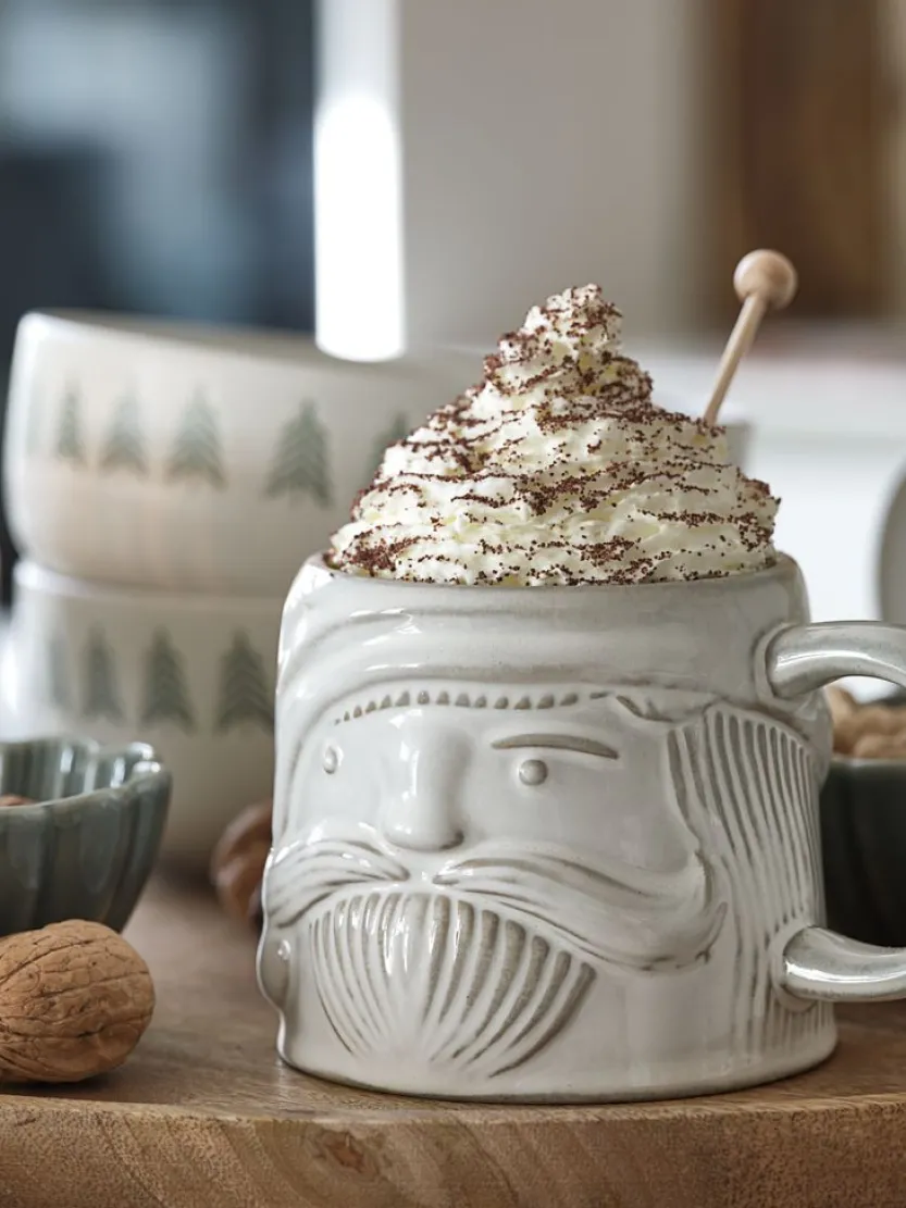 Witte kerst mok met een uniek ontwerp van een kerstman gezicht. Deze mok heeft een stevige handgreep en is geschikt voor de vaatwasser. Perfect voor het genieten van je favoriete warme drank tijdens de feestdagen. B15 x L10 x H9 x L360 ml cm