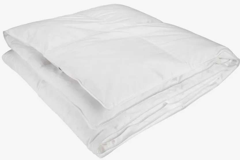 Allergievriendelijk muskusdons dekbed 135×200 cm met 90% witte Europese muskusdons/10% muskusveren, 500g. Muskusdons lijkt op het exclusieve eiderdons en heeft een zeer goed isolatievermogen. Zachte tijk van 100% cambric katoen. De nauw geweven tijk zorgt ervoor dat de huisstofmijt er niet gemakkelijk doorheen kan dringen. Boxconstructie met genaaide wanden voor goede isolatie zonder koude plekken. Vulvermogen 725. Wasbaar op 60°C. Incl. opbergtas.