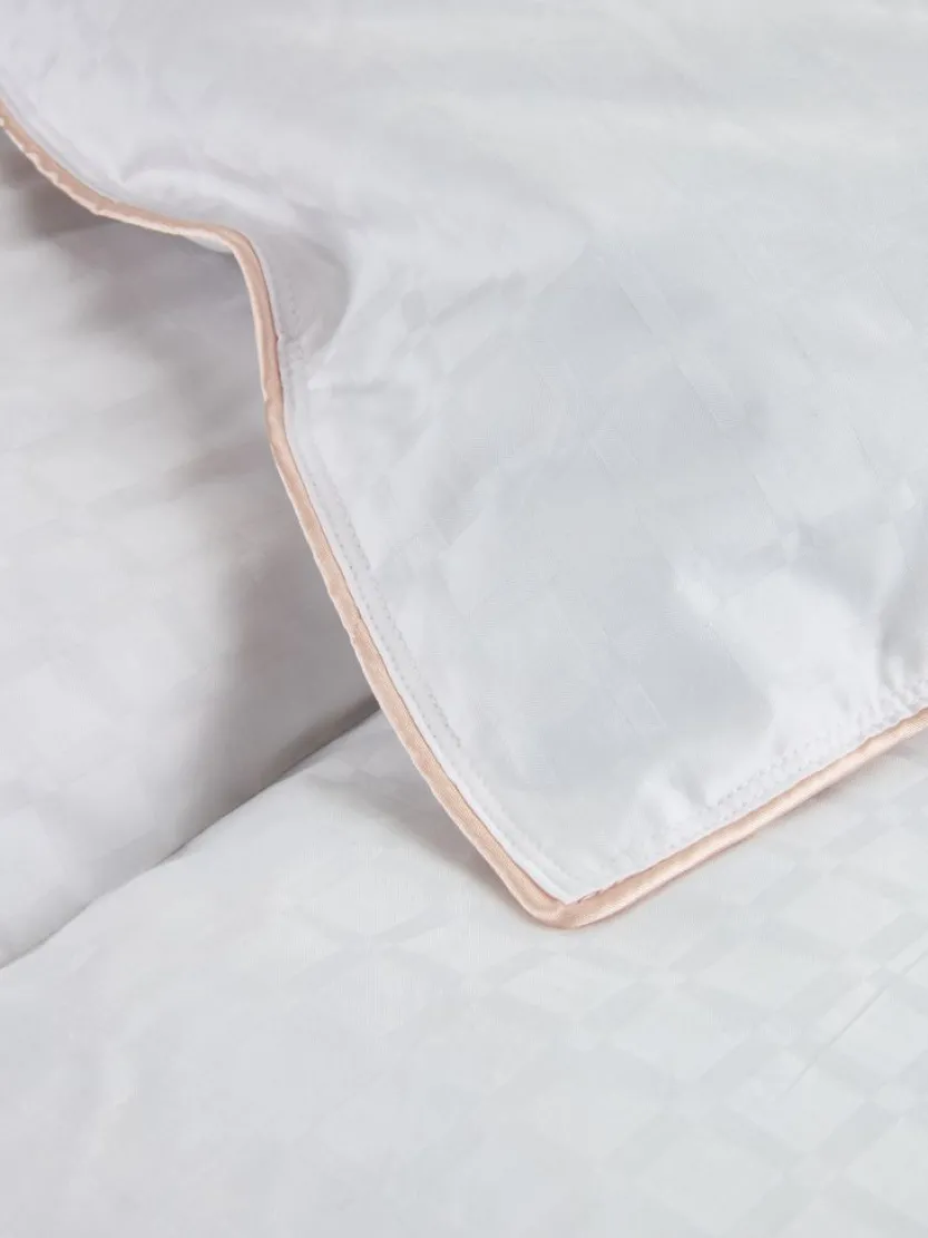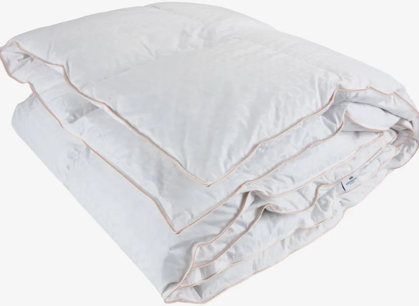 Luxe anti-allergie dekbed 135×200 cm met 100% wit Europees muskusdons, 800 g. Muskusdons lijkt op het exclusieve eiderdons en zorgt voor uitzonderlijke isolatie. 100% jacquard geweven katoenen tijk. De dichtgeweven tijk helpt het binnendringen van huisstofmijt te verminderen. Boxconstructie met afgeschuinde wanden voor isolatie zonder koude plekken. Vulkracht 750. Wassen op 60°C. Incl. opbergtas.