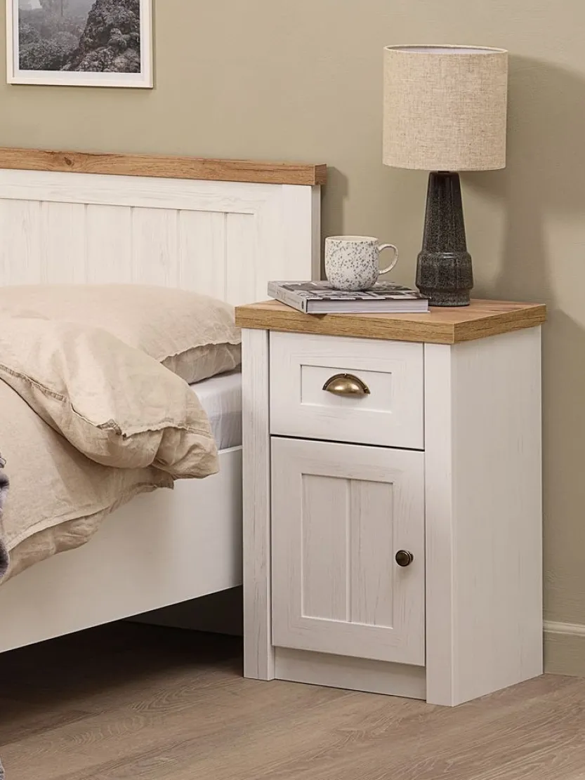Nachtkastje MARKSKEL 1 lade wit/eiken kleur
