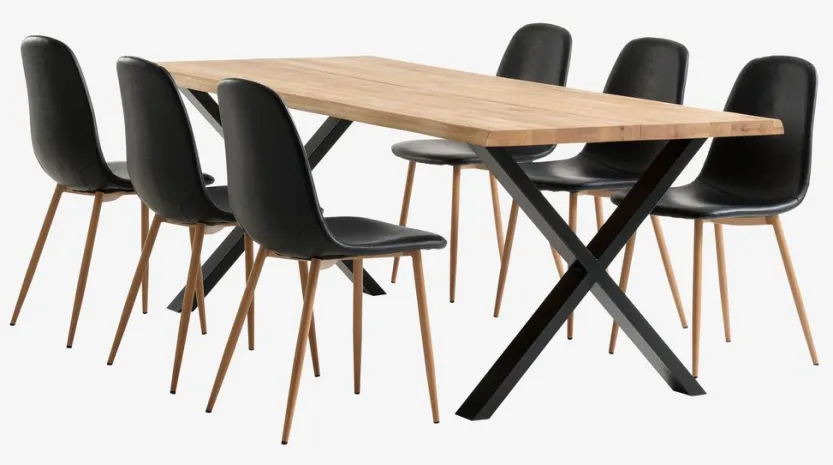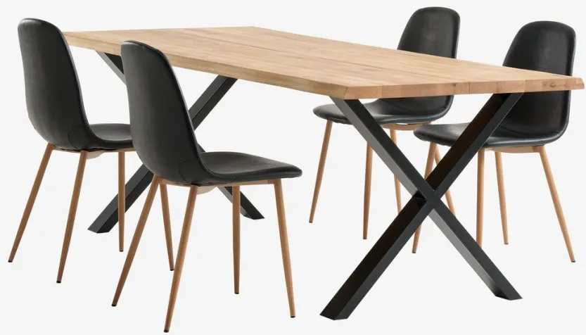 ROSLEV L200 tafel naturel eiken + 4 JONSTRUP zwart/eiken