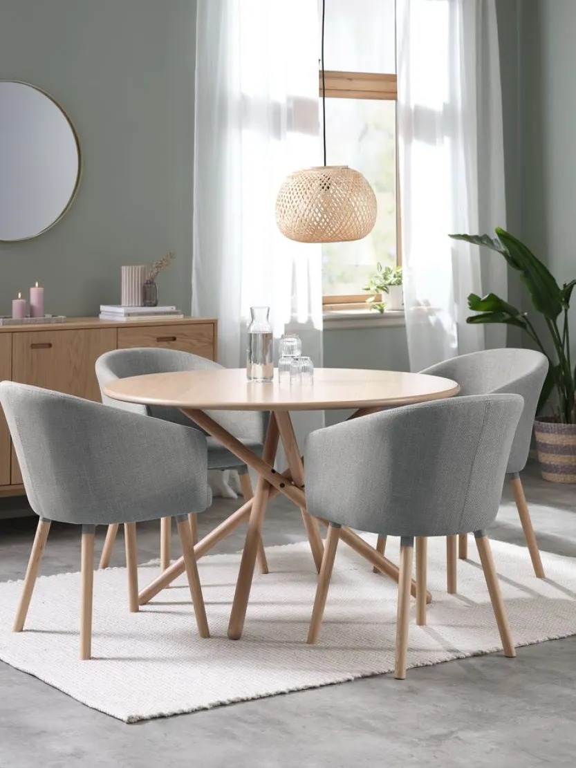 SKIBET Ø120 tafel lichtgrijs + 4 KLOSTER lichtgrijs/eiken