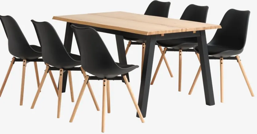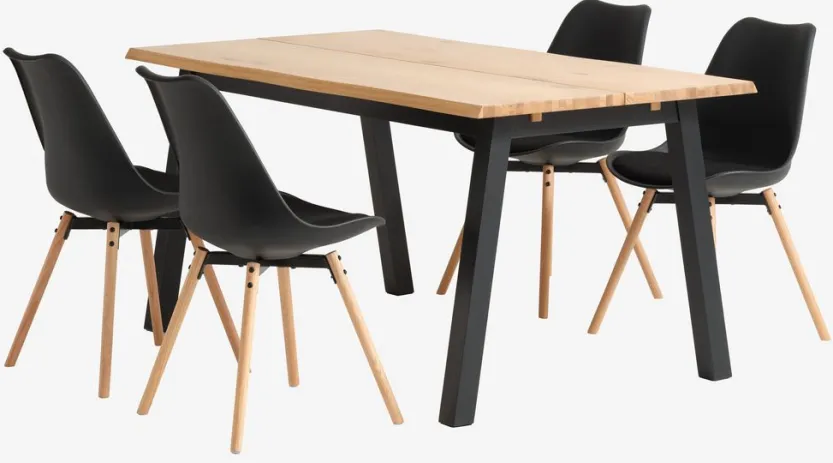 SKOVLUNDE L160 tafel eiken + 4 KASTRUP stoelen zwart
