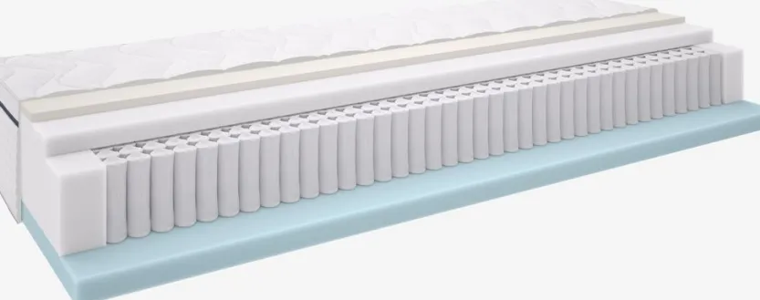 27 cm dik springveermatras 80×200 cm met pocketveren 505/m² verdeeld over 7 comfortzones die unieke, ergonomisch correcte ondersteuning bieden. Het matras is gevuld met ademende latex en koudschuim aan de ene kant en polyetherschuim aan de andere kant. Latex voert overtollige warmte effectief af. Wasbare stretch tijk met een zachte, dikke voering.
