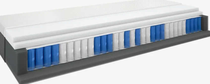 27 cm dikke springveermatras 80×200 cm met pocketveren 289/m², verdeeld in 11 comfortzones. Het matras is gevuld met drukverlagend AIR-traagschuim en gelschuim aan de ene kant en polyetherschuim aan de andere kant. AIR-traagschuim vormt zich precies en snel naar de contouren van je lichaam, zelfs in een koele slaapomgeving. Wasbare tijk.