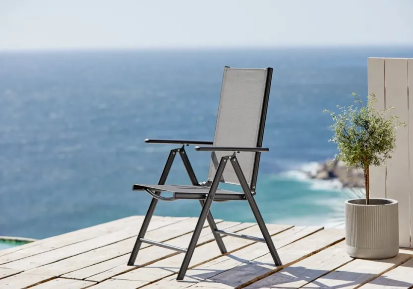 Aluminium en textileen. 7 standen. Inklapbaar.