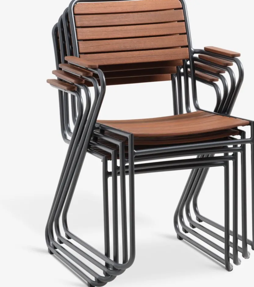 Aluminium en geolied FSC® hardhout. Stapelbaar.