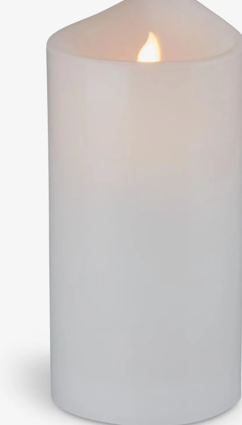 Off-white LED stompkaars met ingebouwde LED verlichting. Deze decoratieve stompkaars heeft een realistisch flakkerend effect, wat zorgt voor een warme en gezellige sfeer in huis. De stompkaars is uitgerust met een handige timerfunctie en heeft een brandduur van 80 uren. Werkt op 2 AA-batterijen (niet inbegrepen). Ø10 x H19,5 cm.