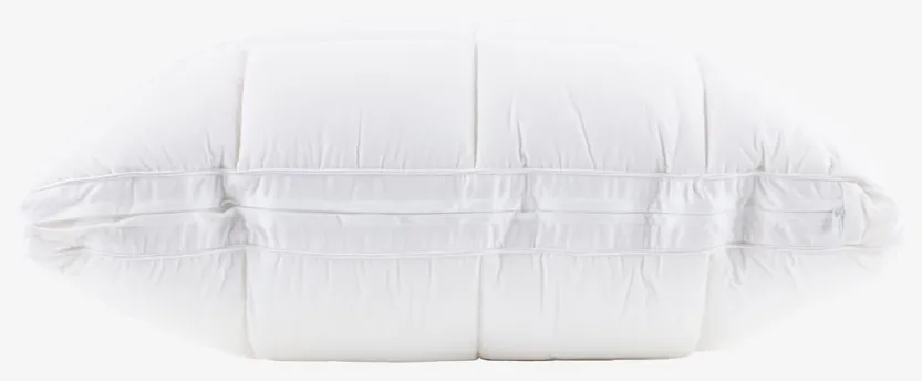 Praktisch 3-in-1 synthetisch kussen, 60×63/70 cm waarbij 2 binnenkussens gecombineerd worden met een dik gevoerde hoes. Deze kunnen gezamenlijk of afzonderlijk van elkaar gebruikt worden. De hoes is gevuld met gesiliconiseerde polyestervezels, 270g. De binnenkussens zijn gevuld met balvezels, 425/600g. De hoogte en hardheid van het kussen kunnen worden aangepast door 1 of beide binnenkussens te verwijderen. Zachte tijk van 100% cambric katoen. Wasbaar op 60°C. Incl. opbergtas.
