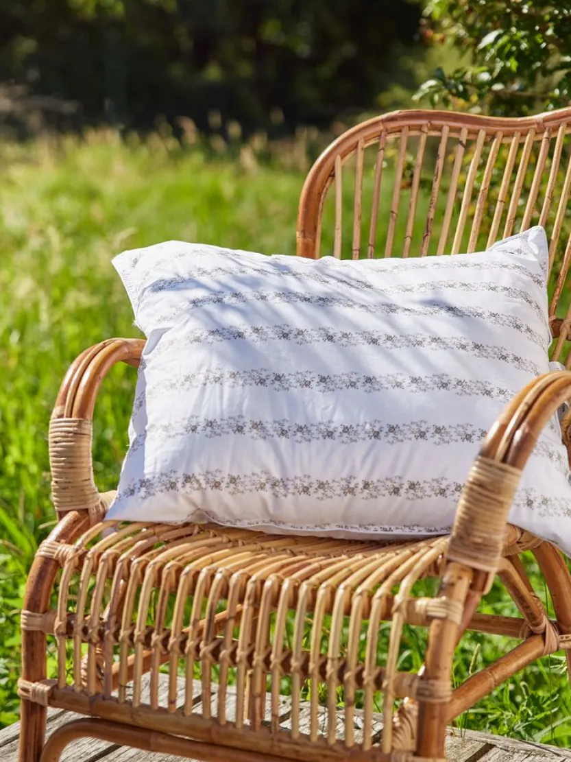 Synthetisch kussen 60×63/70 cm gevuld met uniek gesiliconiseerd synthetisch dons (100% gerecycled), 700g. De zachte, lichte vulling behoudt zijn volume en is gemakkelijk op te schudden. Zachte tijk van 100% cambric katoen. Wasbaar op 60°C.