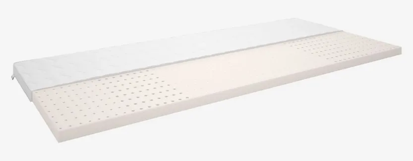 8 cm dik topmatras 90×200 cm met een kern van ademende latex dat overtollige warmte afvoert. Wasbare stretch tijk met een zachte dikke voering.