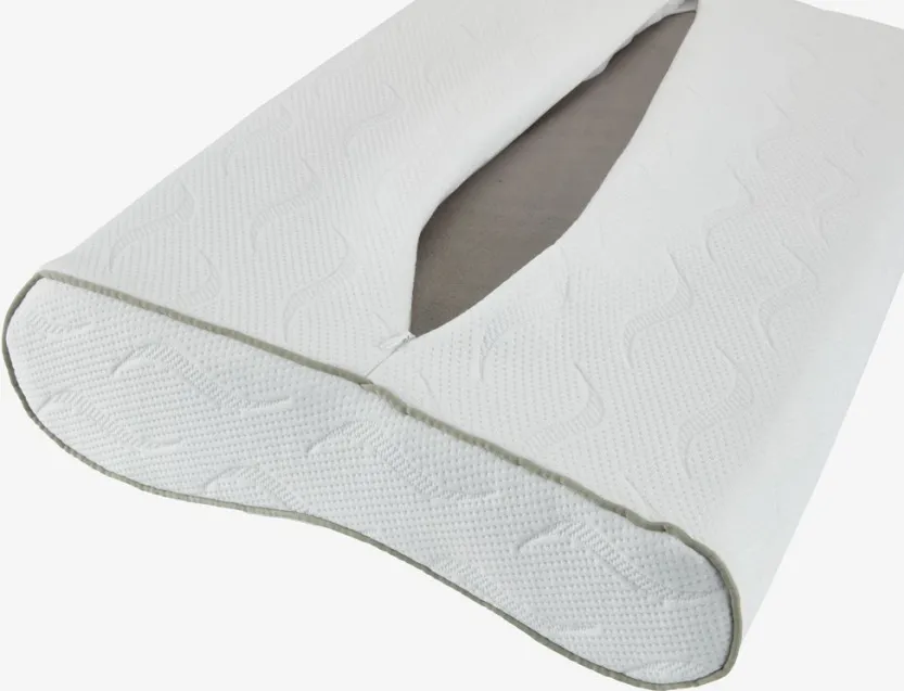 Allergievriendelijk, ergonomisch kussen 40x60x11/9 cm met drukverlagend AIR traagschuim met vochtabsorberende bamboe houtskool. AIR traagschuim vormt zich snel en precies naar je nek en schouders, zelfs in een koude slaapomgeving. Tijk van 100% polyester, wasbaar op 40°C. De tijk heeft een anti-huisstofmijt behandeling gehad, wat het binnendringen van huisstofmijt verminderd.