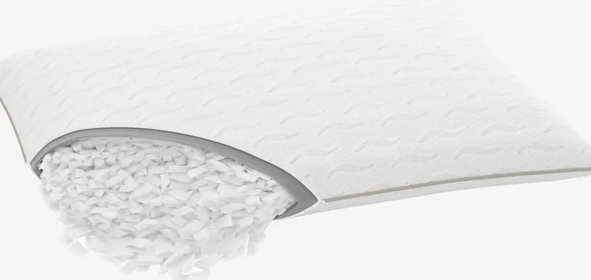 Allergievriendelijk traagschuim hoofdkussen 48x58x15 cm van drukverlagend, versnipperd AIR traagschuim. AIR traagschuim vormt zich snel en precies naar je nek en schouders, zelfs in een koele slaapomgeving. De hoogte van het kussen kan worden aangepast door een deel van de vulling te verwijderen. 100% polyester tijk, wasbaar op 40°C. De tijk heeft een anti-mijtbehandeling ondergaan, die het aantal huismijten helpt verminderen. Gewatteerd met AIR traagschuim doordrenkt met bamboe houtskool.