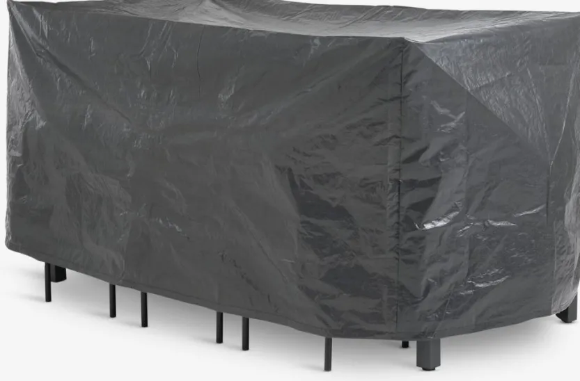 Waterdichte hoes voor tuinmeubelen in donkergrijs polyethyleen. Deze vorstbestendige hoes beschermt uw tuinmeubelen tegen slechte weersomstandigheden. Ideaal om uw tuinset het hele jaar door schoon en droog te houden. B120 x L215 x H105 cm
