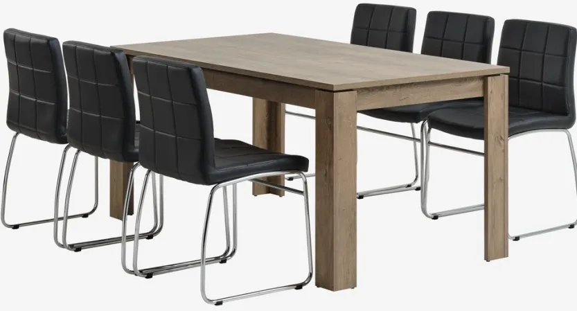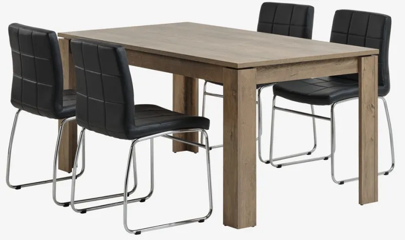 VEDDE L160 tafel wild eiken + 4 HAMMEL stoelen zwart