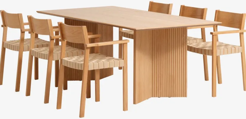 VESTERBORG L200 tafel eiken + 4 VADEHAVET stoelen eiken