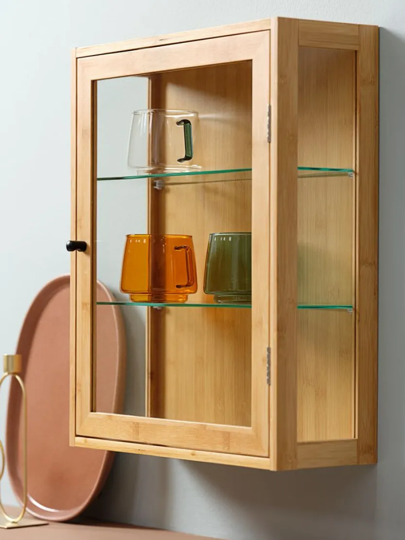 Bamboe, MDF en gehard glas. B40 x H50 x D15 cm