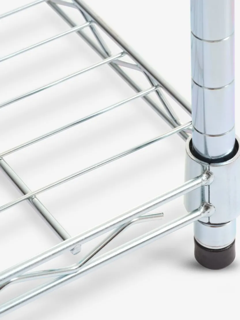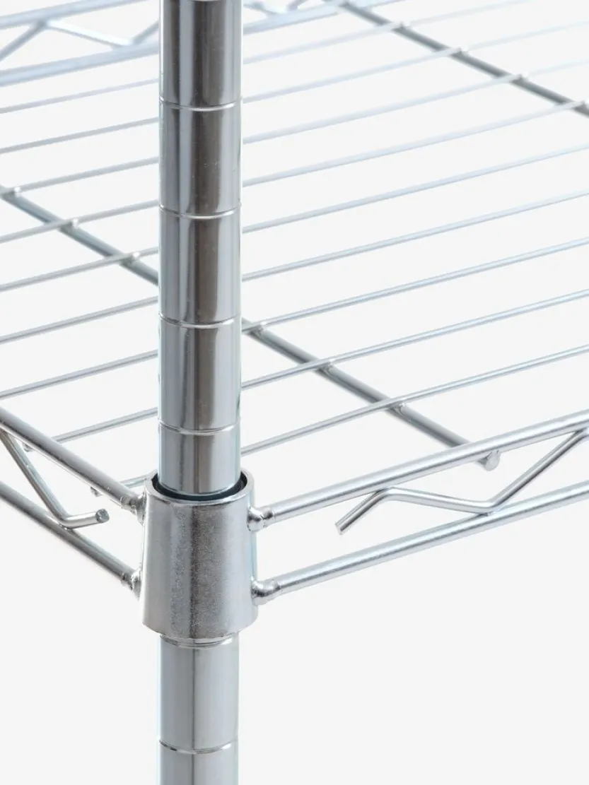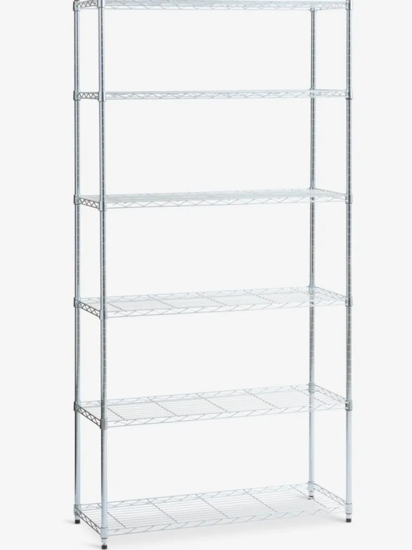 Chroom. De rekken kunnen worden opgedeeld in 2 aparte eenheden. De planken kunnen naar wens worden geplaatst. B90 x H180 x D36 cm